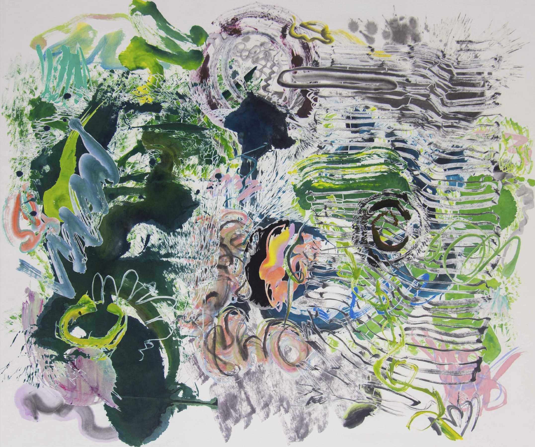 Atwain, Ink, watercolor, paper and collage on Xuan paper, 160 x 180 cm, 2019©Wu Jian’an