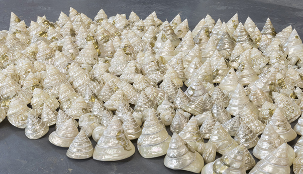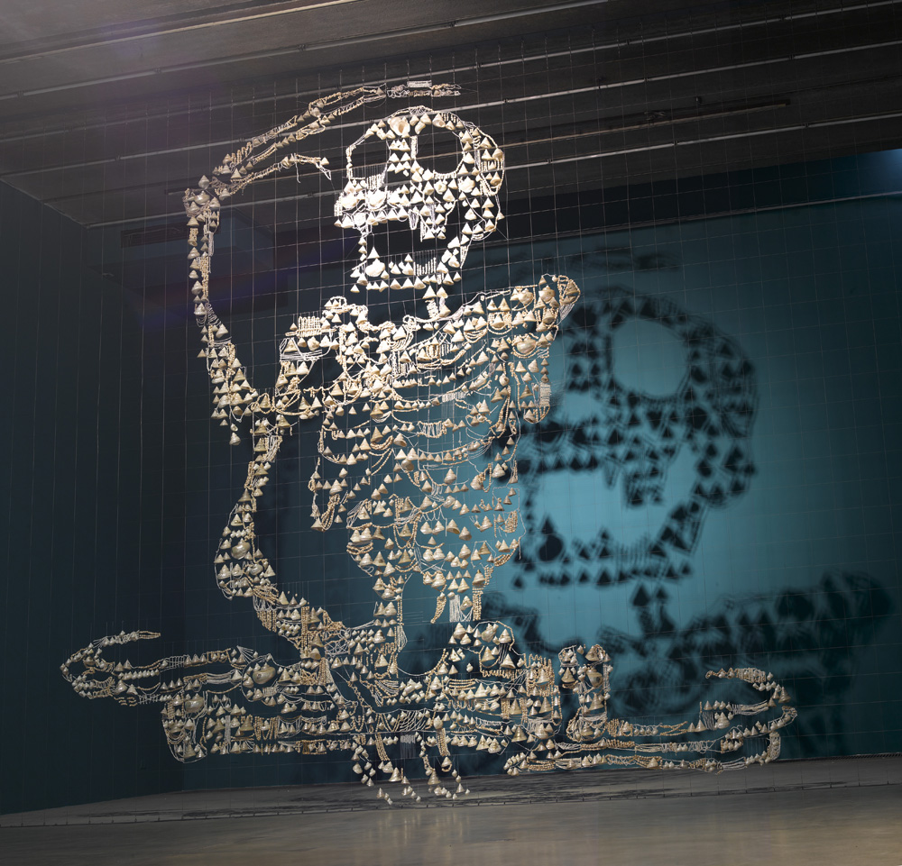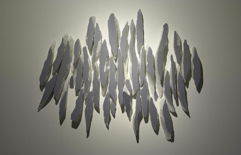 Ten Thousand Things hand dyed and waxed paper-cut, cotton thread, paper 280 x 200 cm x 3