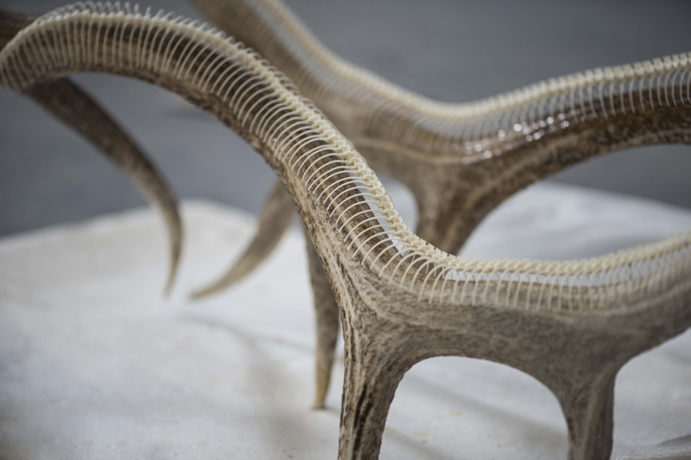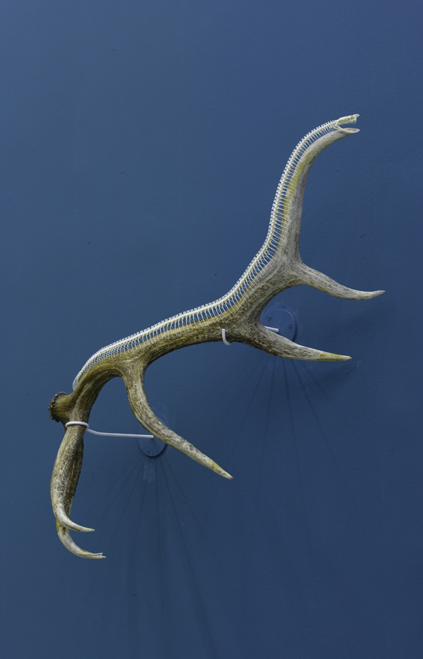 Dinosaur #2 deer horns, snake bones 36 x 100 x 25 cm