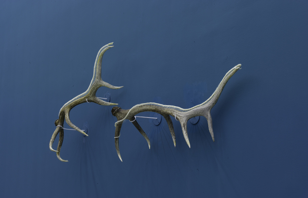 Dinosaur #1 deer horns, snake bones 36 x 100 x 25 cm