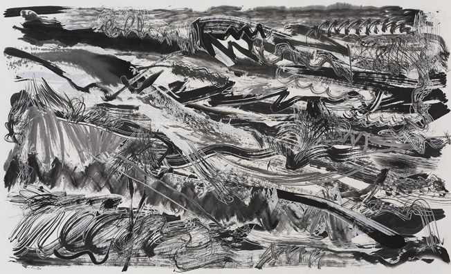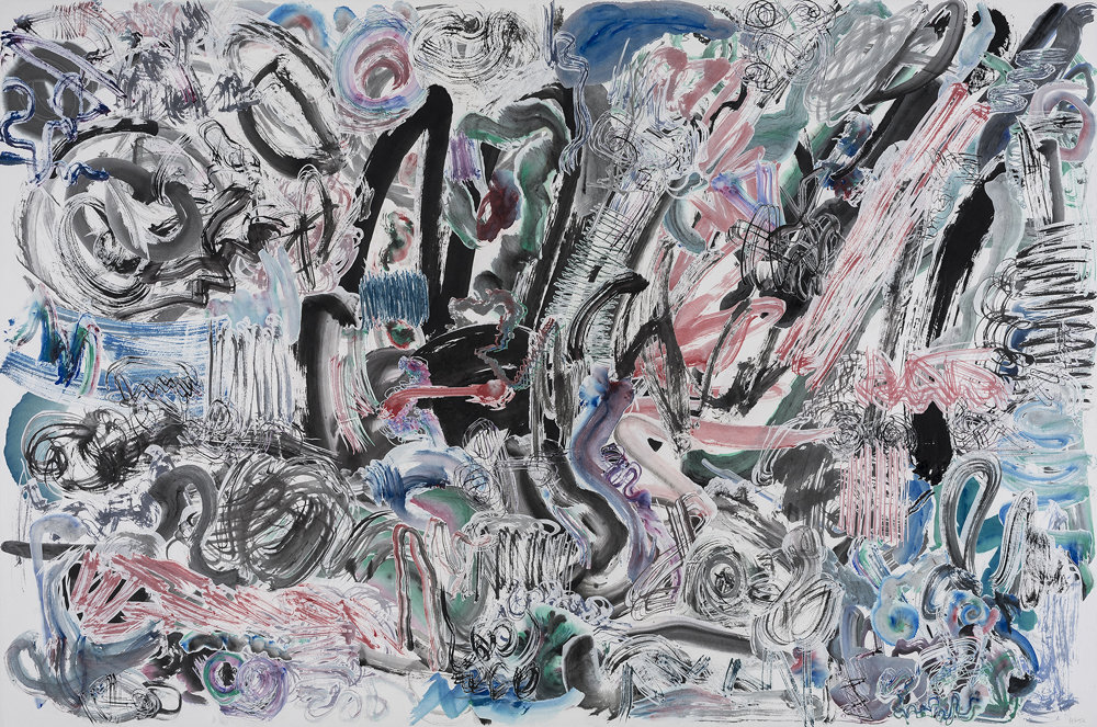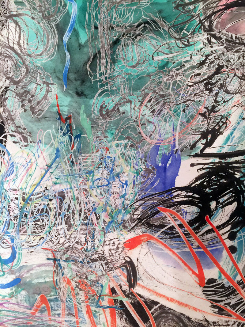 500 Brushstrokes ink painting on Xuan paper, collage 190 x 286 cm.
