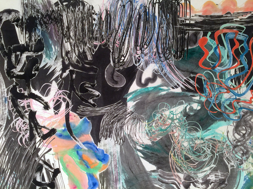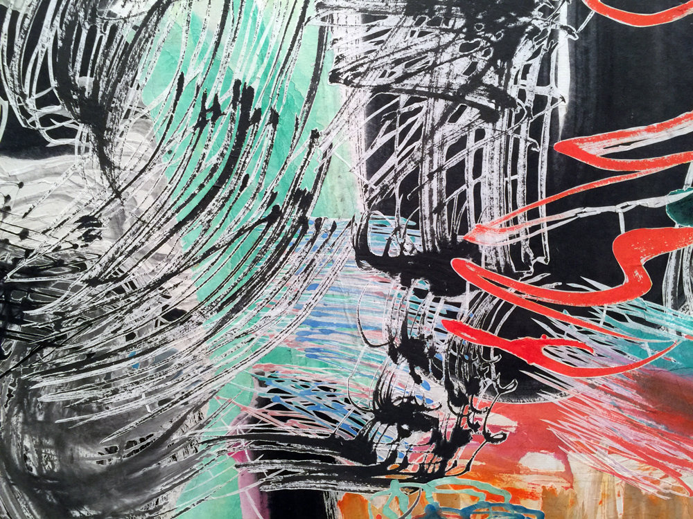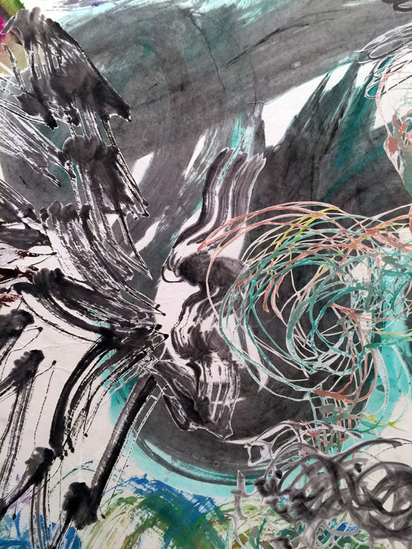 500 Brushstrokes ink painting on Xuan paper, collage 120 x 200 cm
