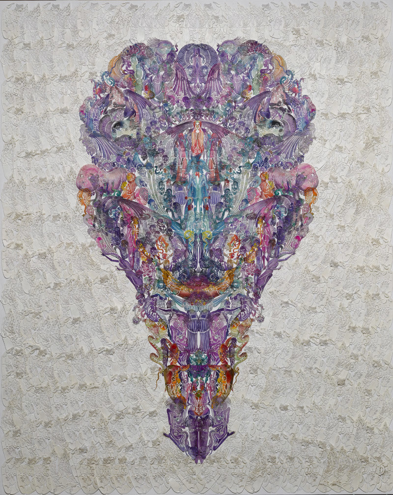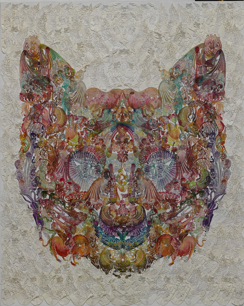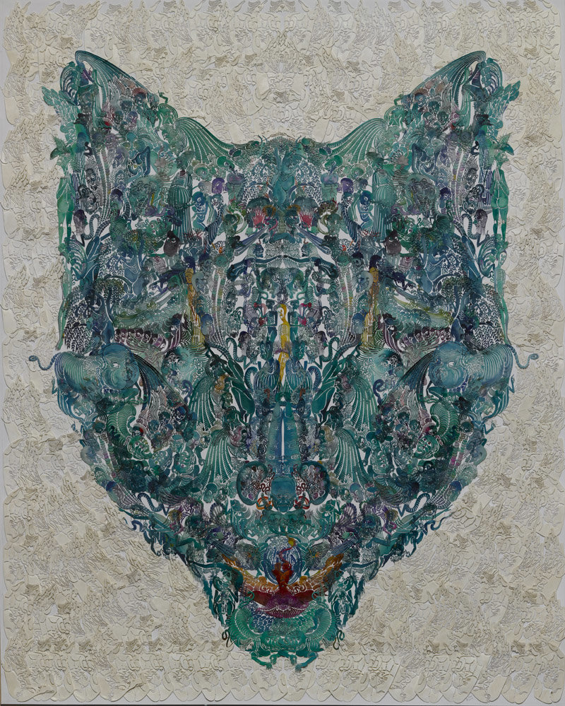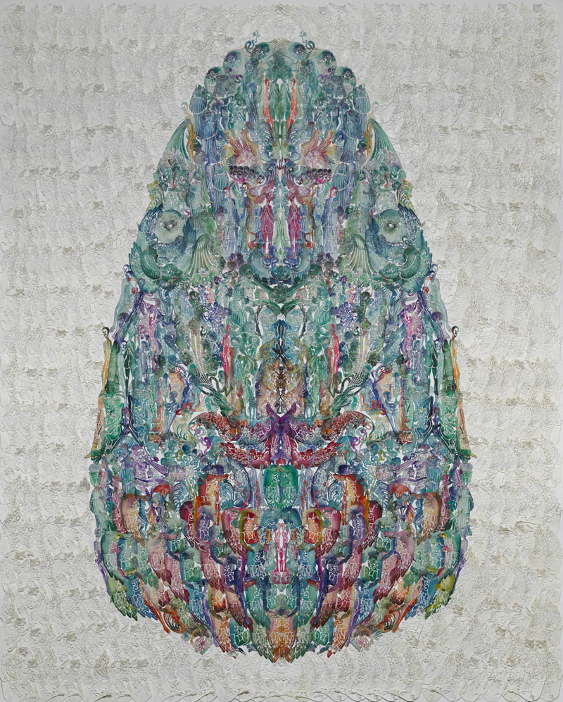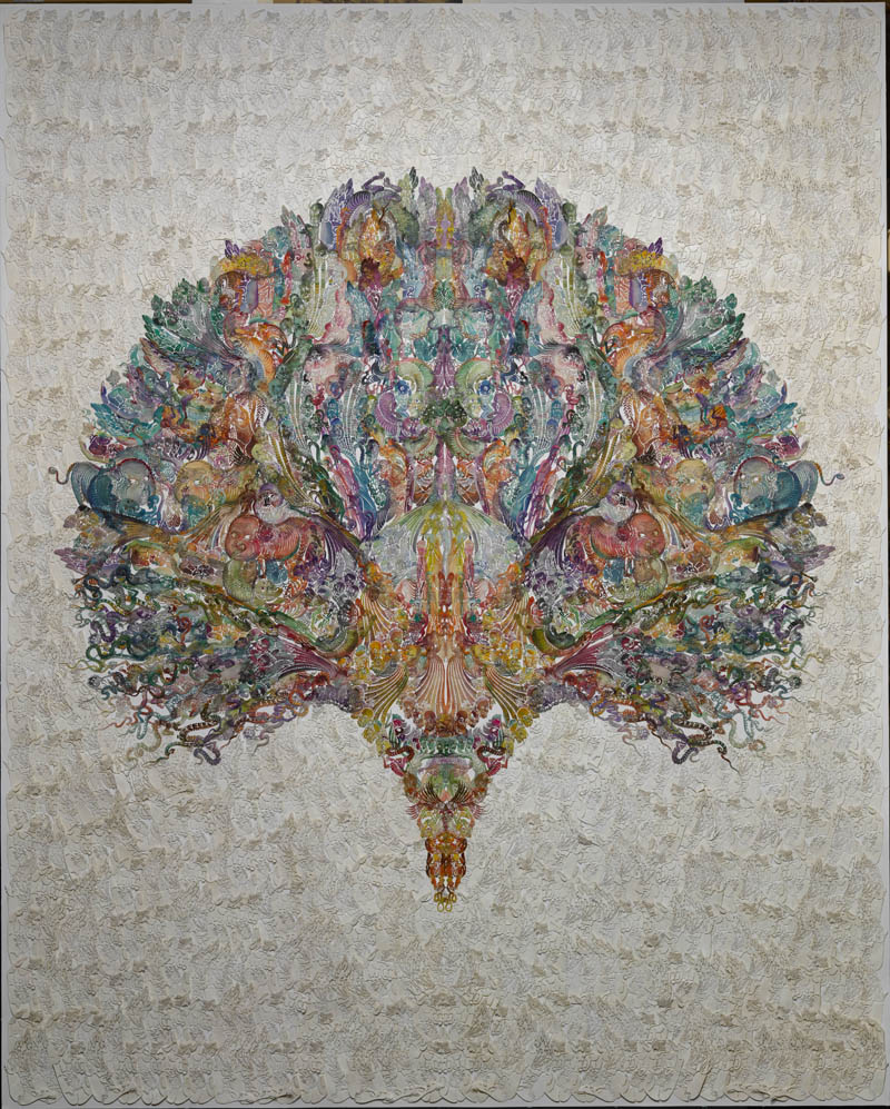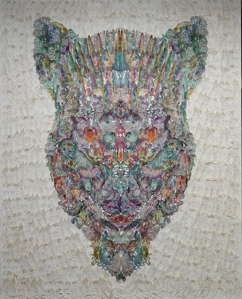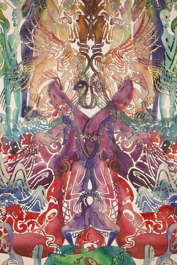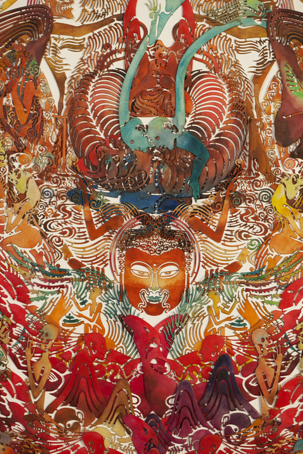 Hand dyed and waxed paper-cut, cotton thread, paper