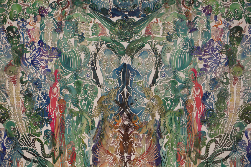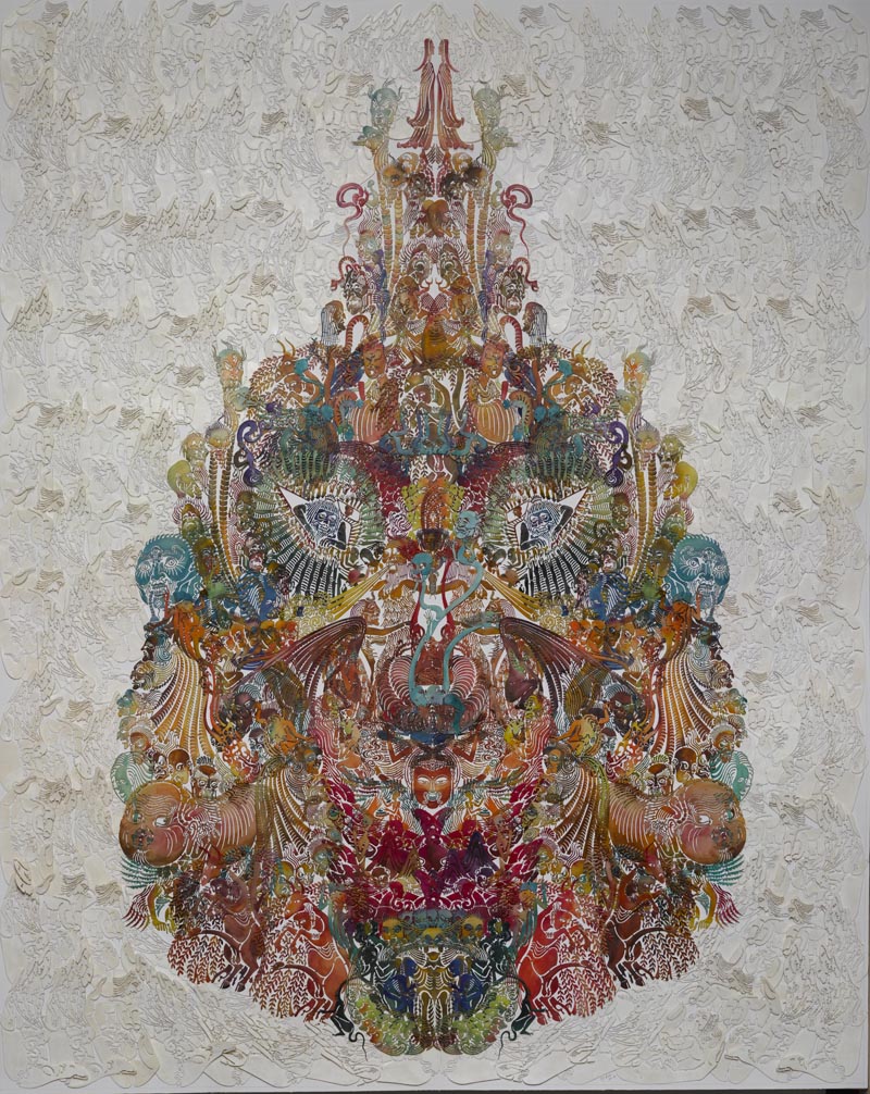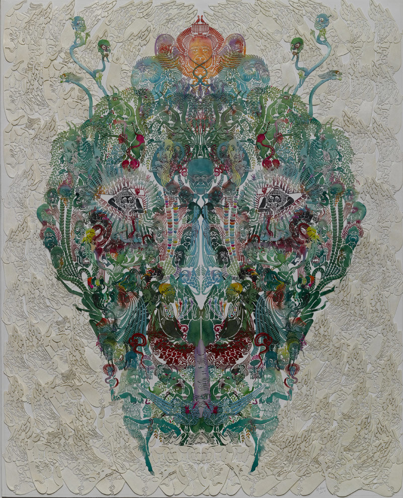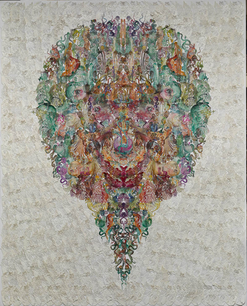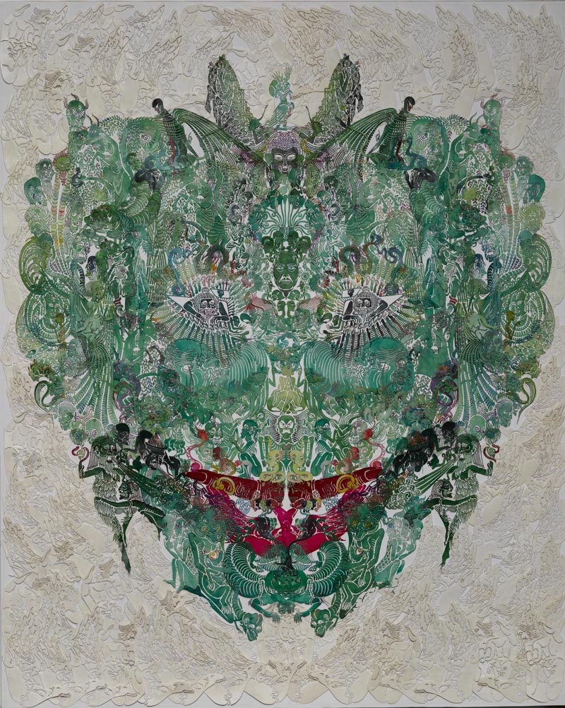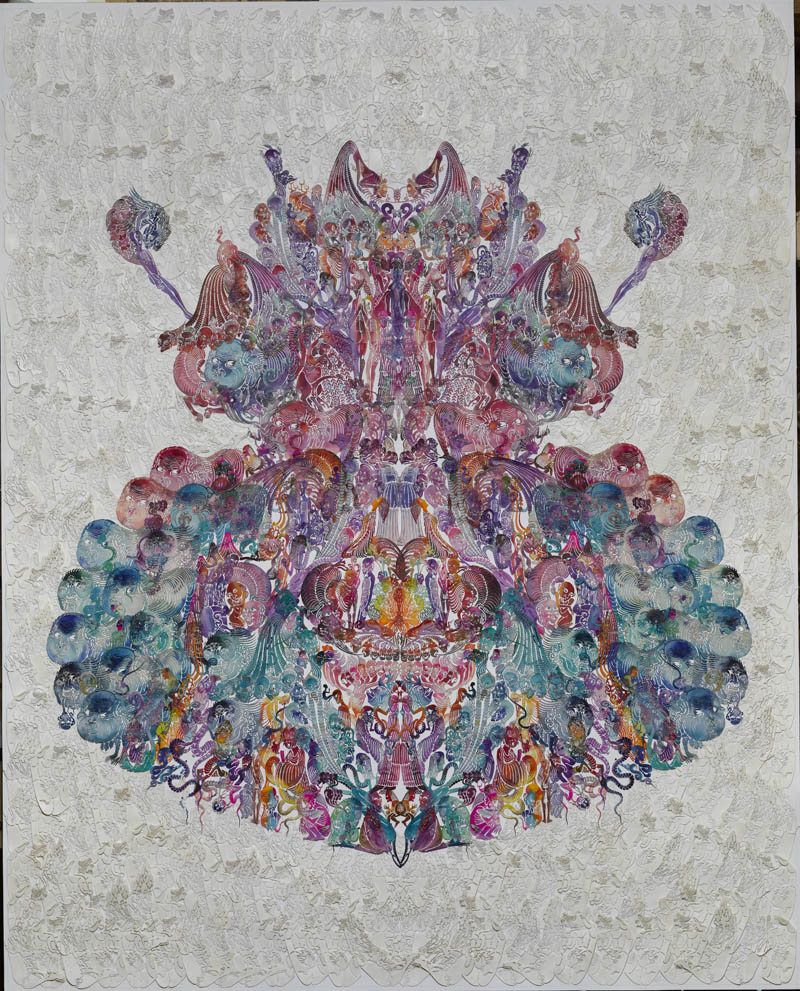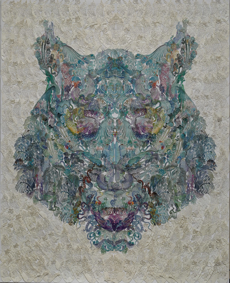 Hand dyed and waxed paper-cut, cotton thread, paper