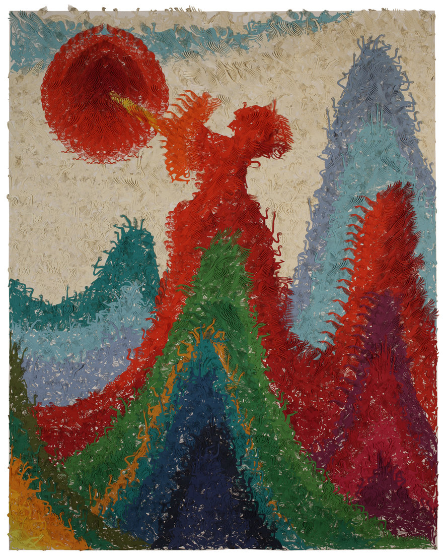 彩纸激光镂刻手工拼贴与裱绢被纸上
