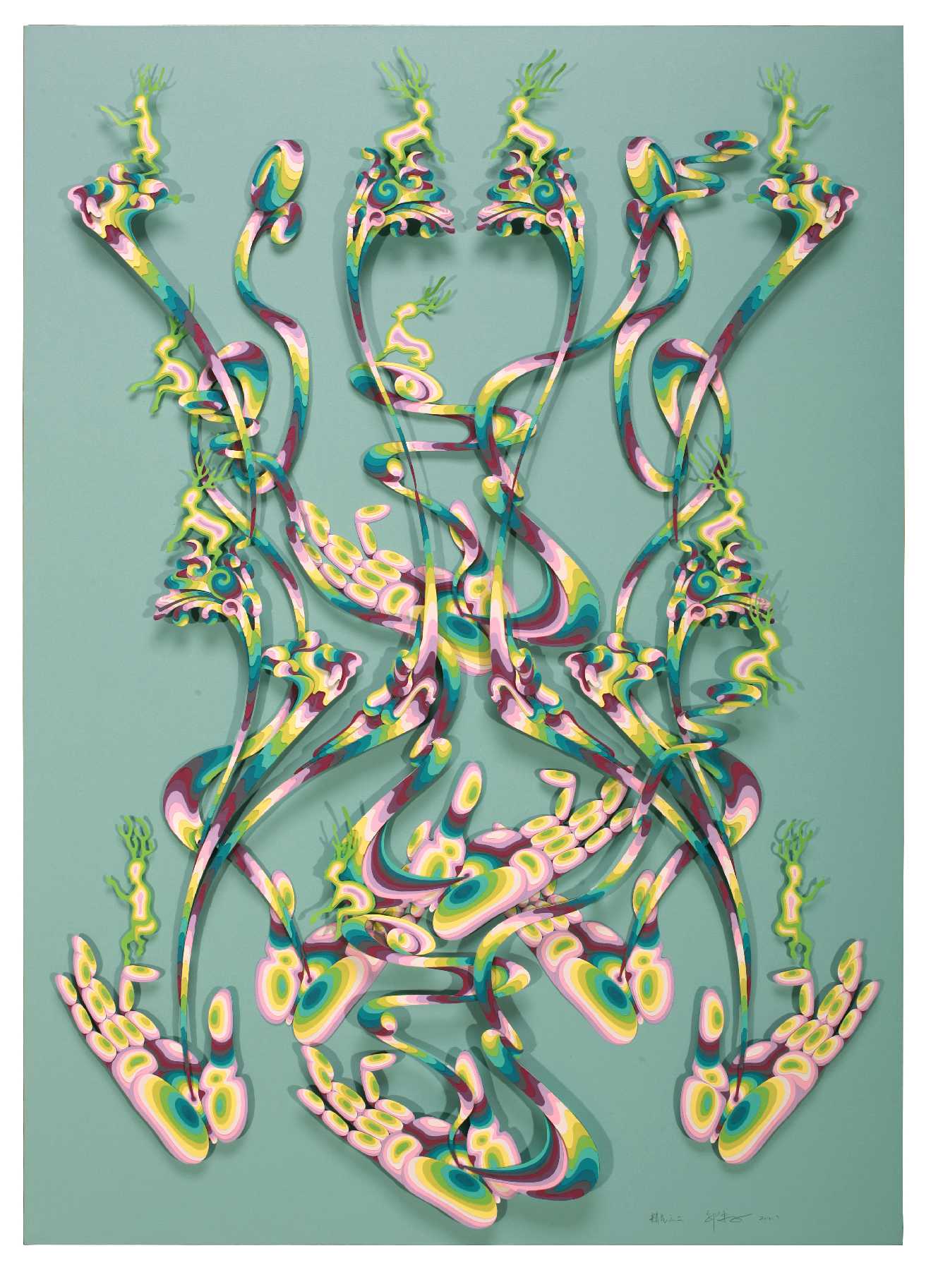 《彩云——精气》,特种纸手工剪贴,76x106cm,2012©邬建安