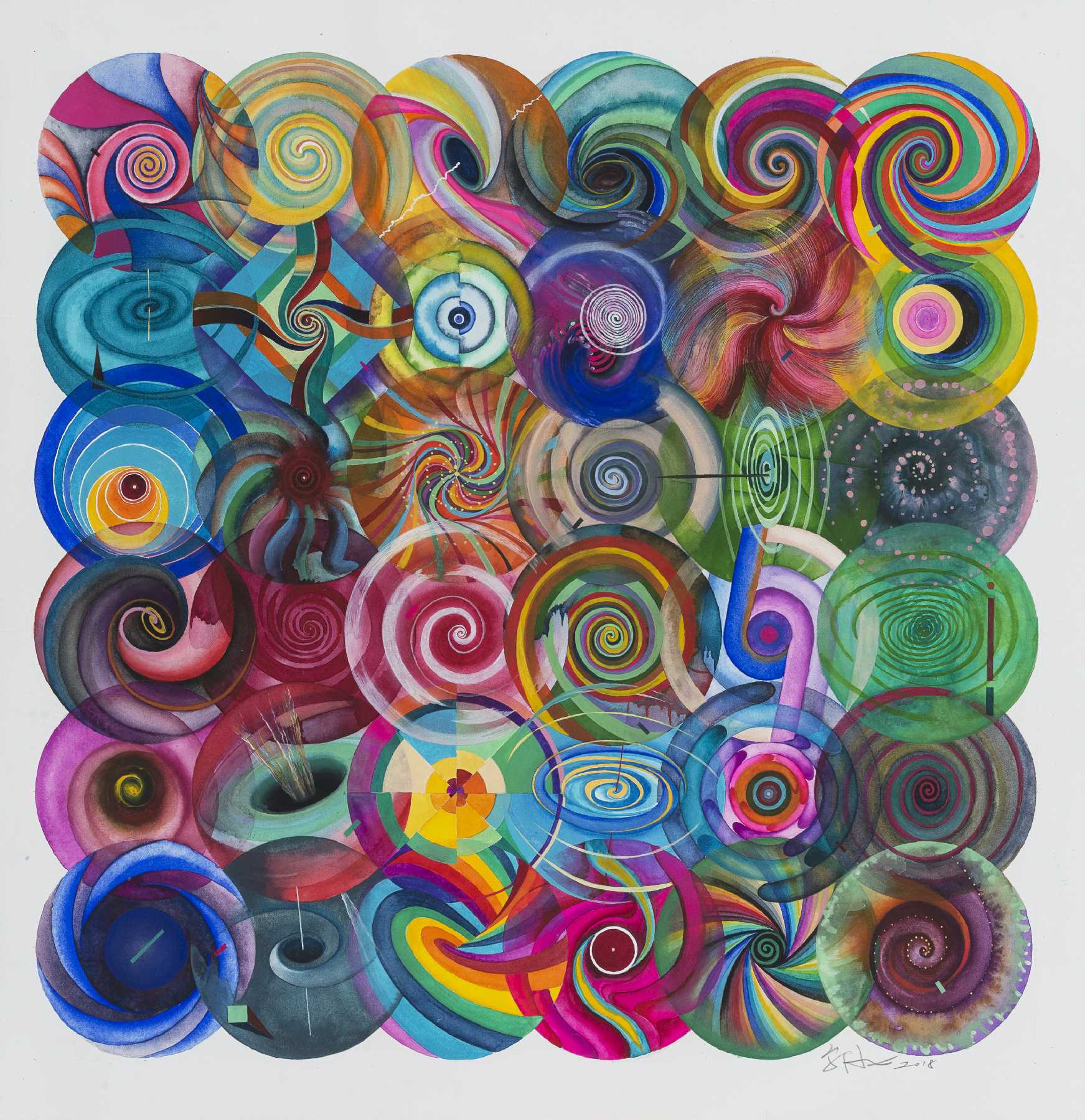 《36颗彩色圆球(X) 》,纸本水彩,53x52cm,2014©邬建安
