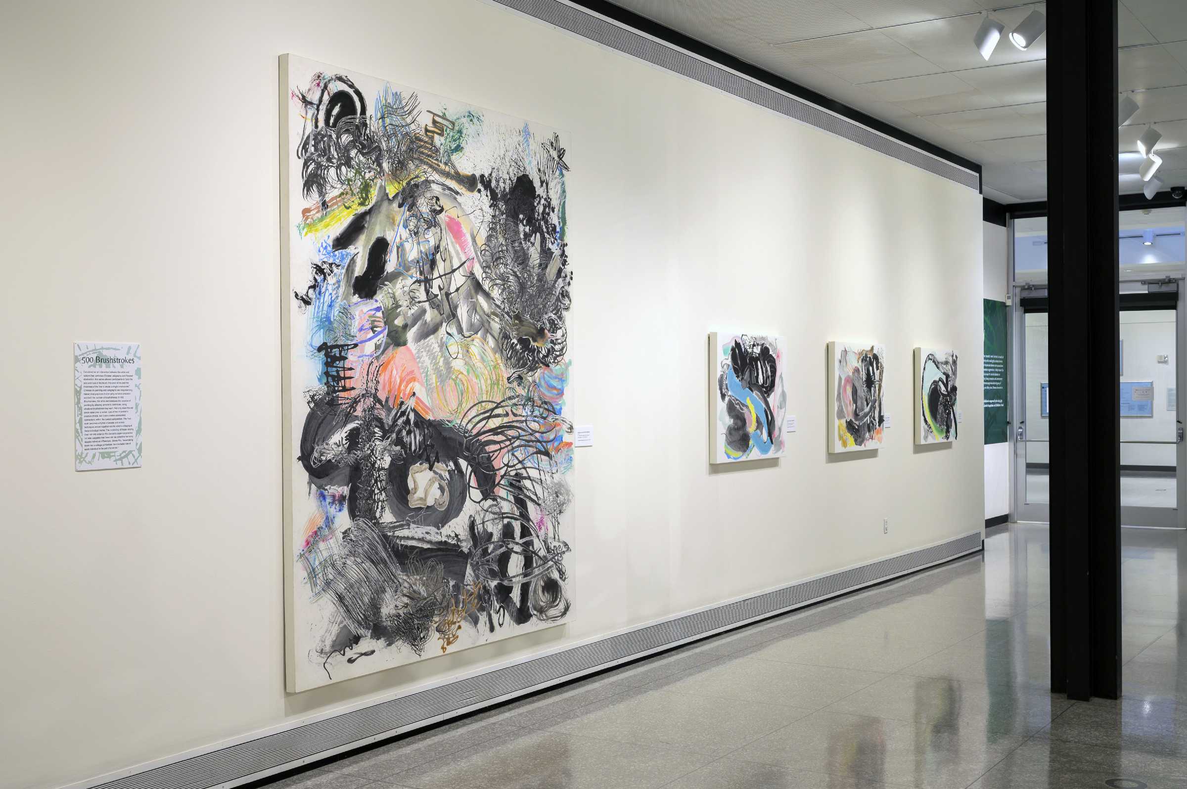 本次展览聚焦艺术家2016年以来在工作室创作的“五百笔”系列,毫无疑问,这些以“我”为样本的视觉实验是艺术家处理更加复杂的社群笔画组合关系的基础,帮助他深入有关“个体与群体秩序关系的可能性”的讨论,这同样也是他的“化身”系列关注的又一主题。展览策展人雷赫马·巴伯(Rehema C. Barber)女士认为,这个系列作品“延续了中国书法和西方动势绘画的传统,并进一步弱化了对精确度的要求和对数量的控制......当这些带有精神世界投射的独一无二的个体书写被聚合到一起,暗示了尽管存在个体差异,依然可以实现某种意义上的和谐。这一点对于自我而言也是如此。”