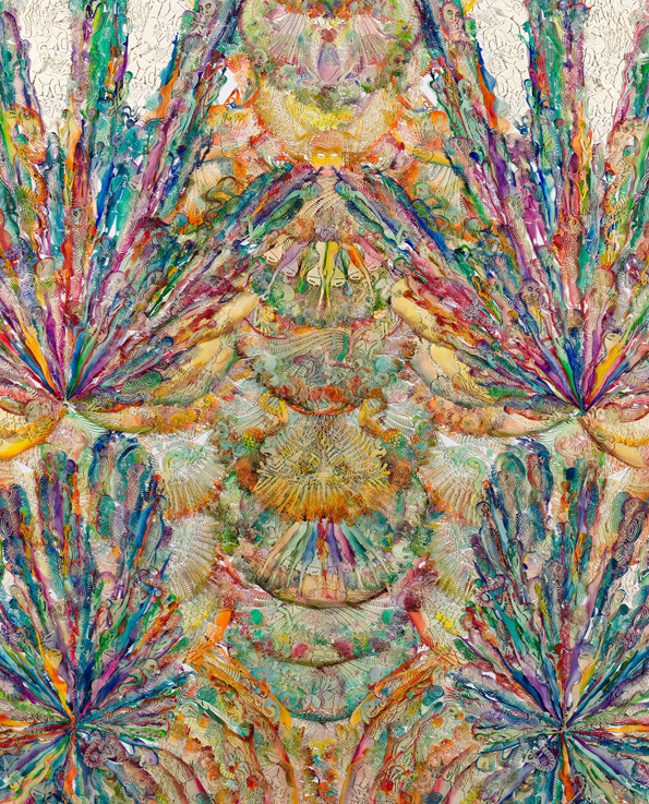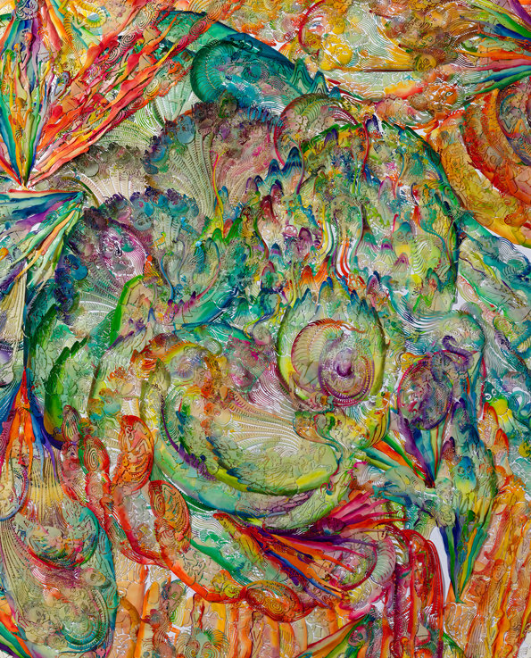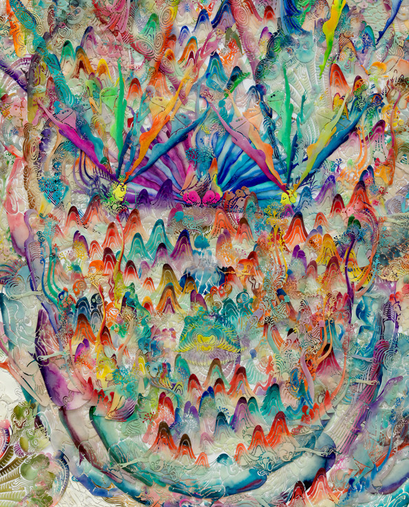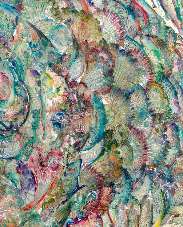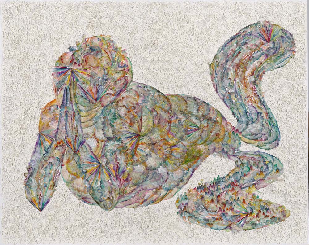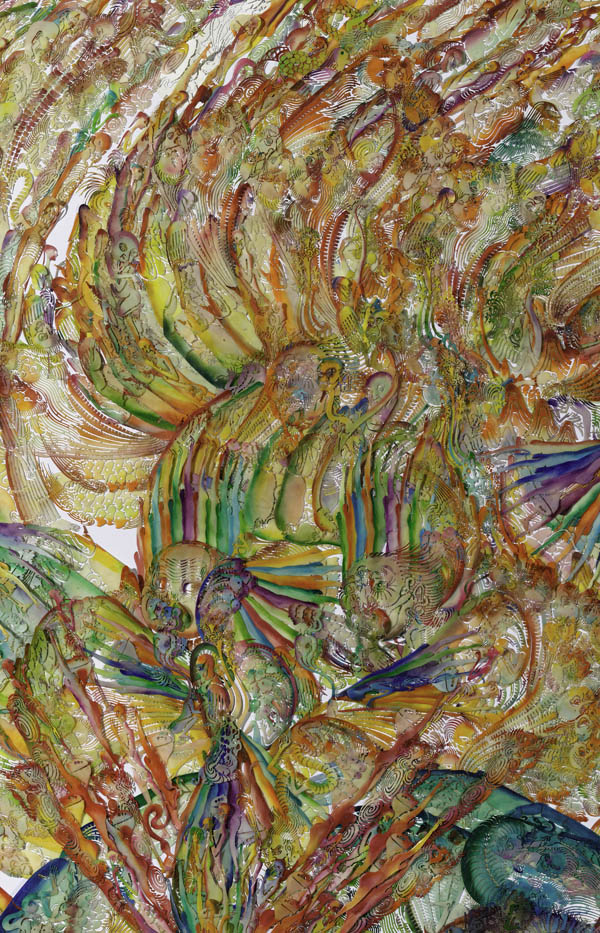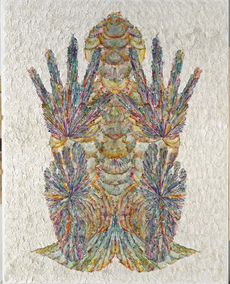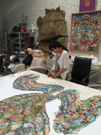 纸本激光镂刻,水彩着色,浸蜡,棉线缝缀于裱布背纸上